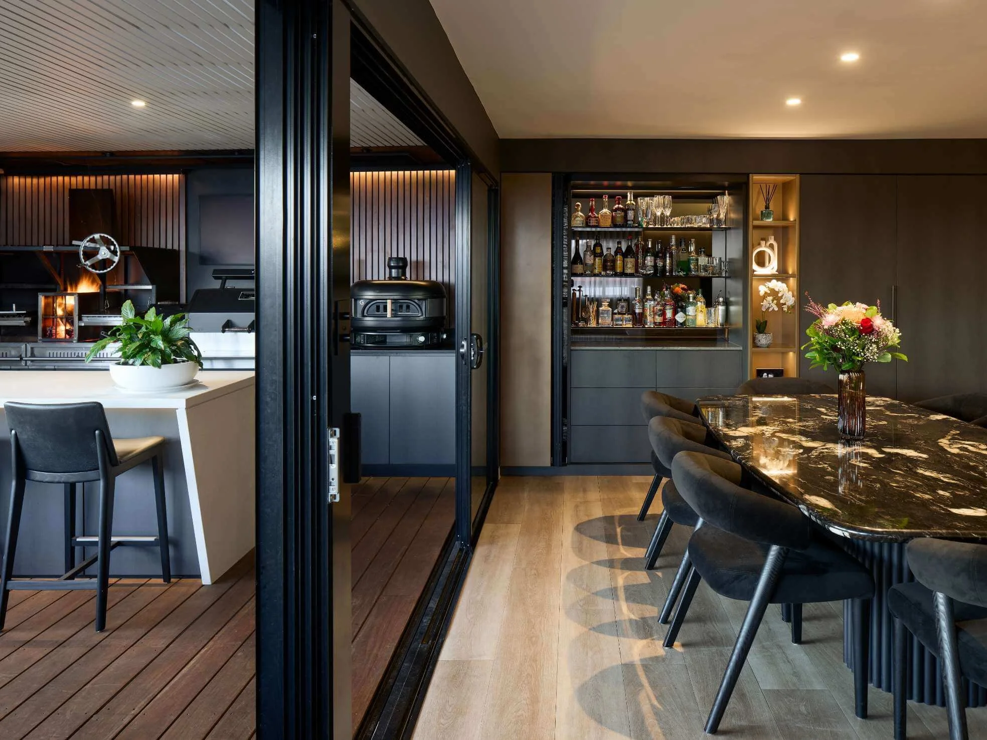 A standout element of the renovation was the addition of a high-end outdoor kitchen, purpose-built for serious home cooking. The space was equipped with a wood-fired pizza oven, smoker, and traditional Argentinian grill, creating a fully functional outdoor culinary zone ideal for family gatherings and entertaining.